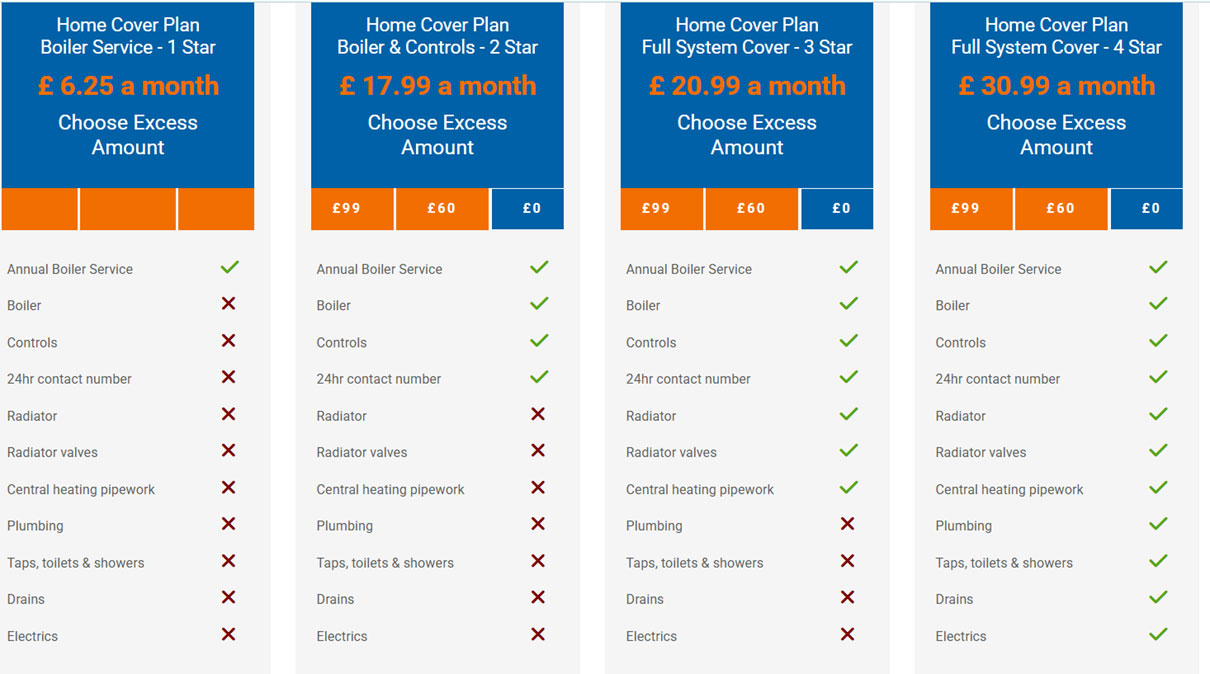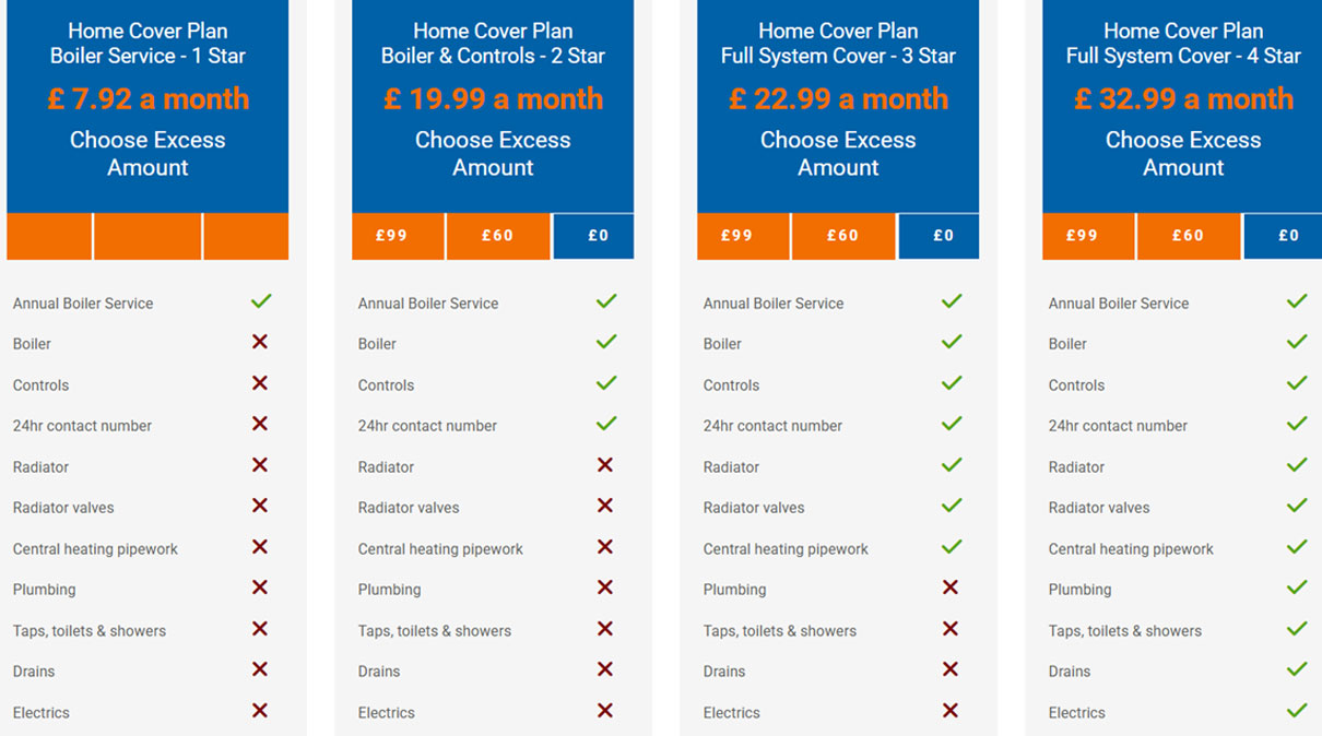 We offer a range of packages for boiler cover, including home and landlord options. We can help you select the right plan.